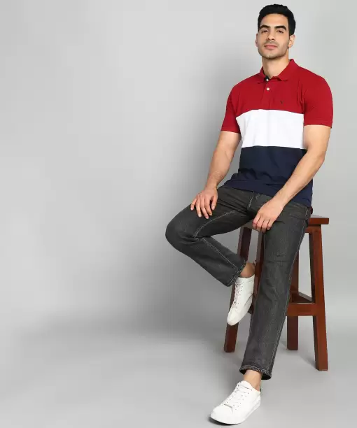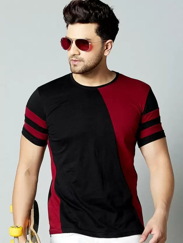 Cotton Round Neck Color Block T-Shirt Maroon::Black