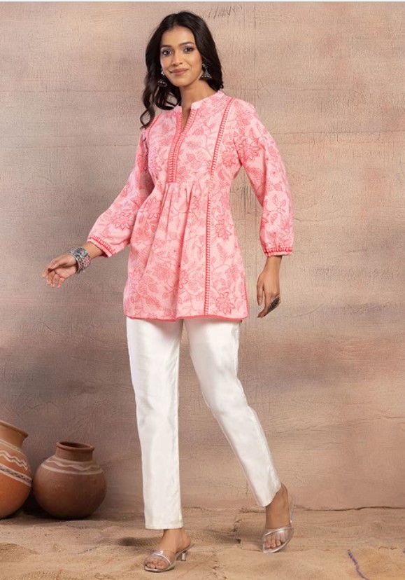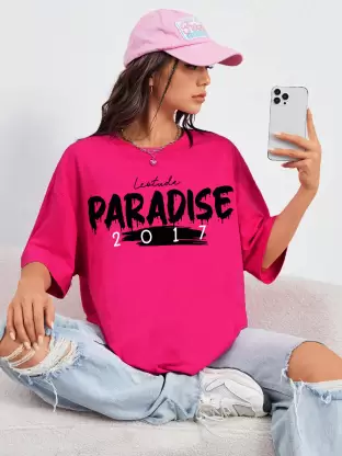 Women Printed Round Neck Cotton Blend Pink T-Shirt