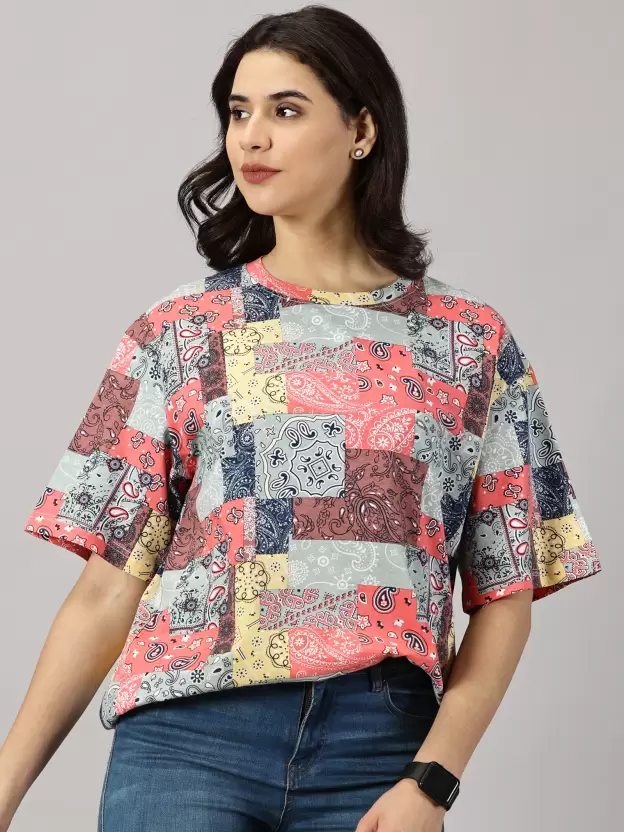 Women Printed Round Neck Pure Cotton Multicolor T-Shirt