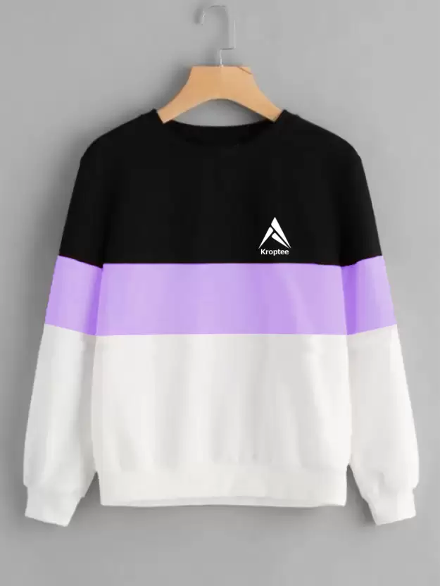 Women Colorblock Round Neck Pure Cotton Purple T-Shirt