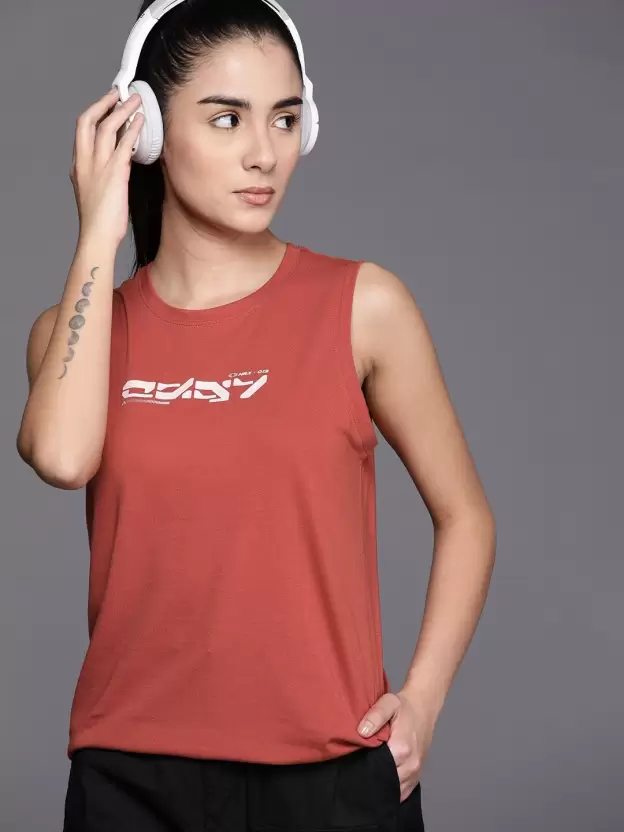 Women Typography Round Neck Cotton Blend Red T-Shirt