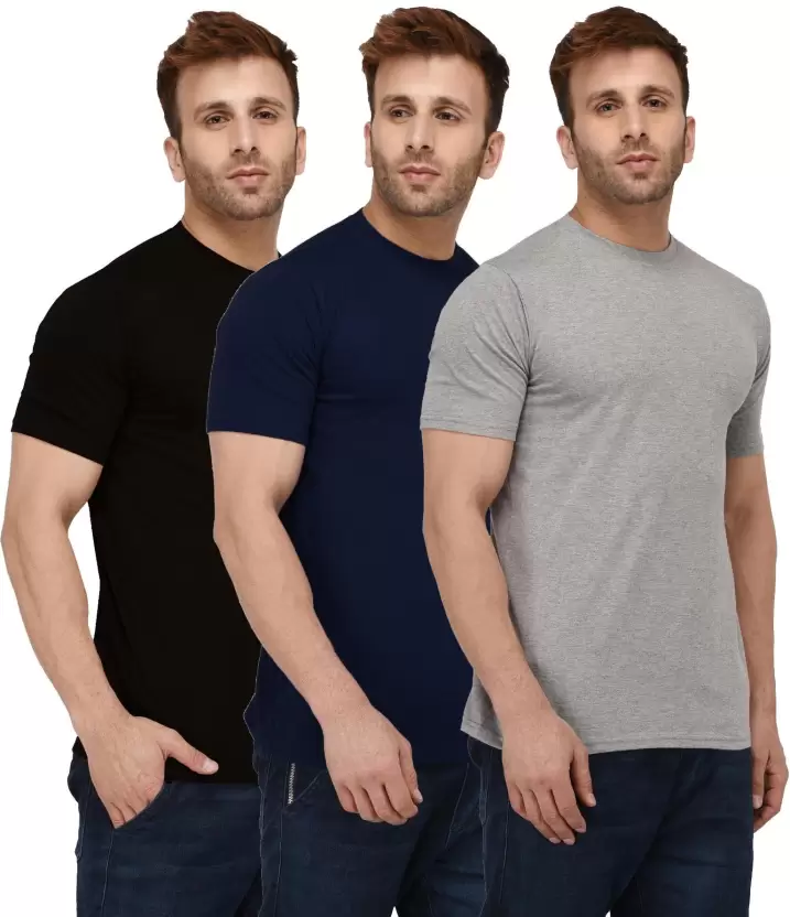 Multicolor Cotton Blend Round Neck T-shirt (Pack 03)