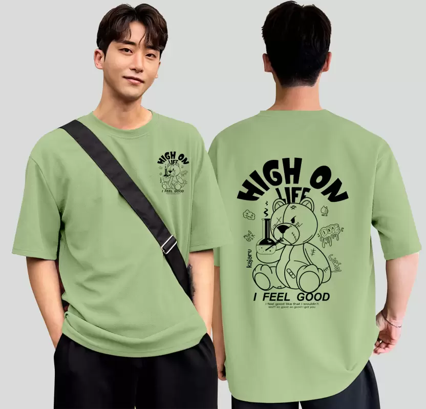 Printed, Typography Round Neck Polyester Green T-Shirt