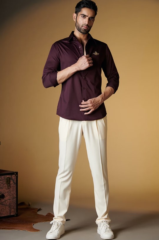 Plum Shirt with Embroidered Crest