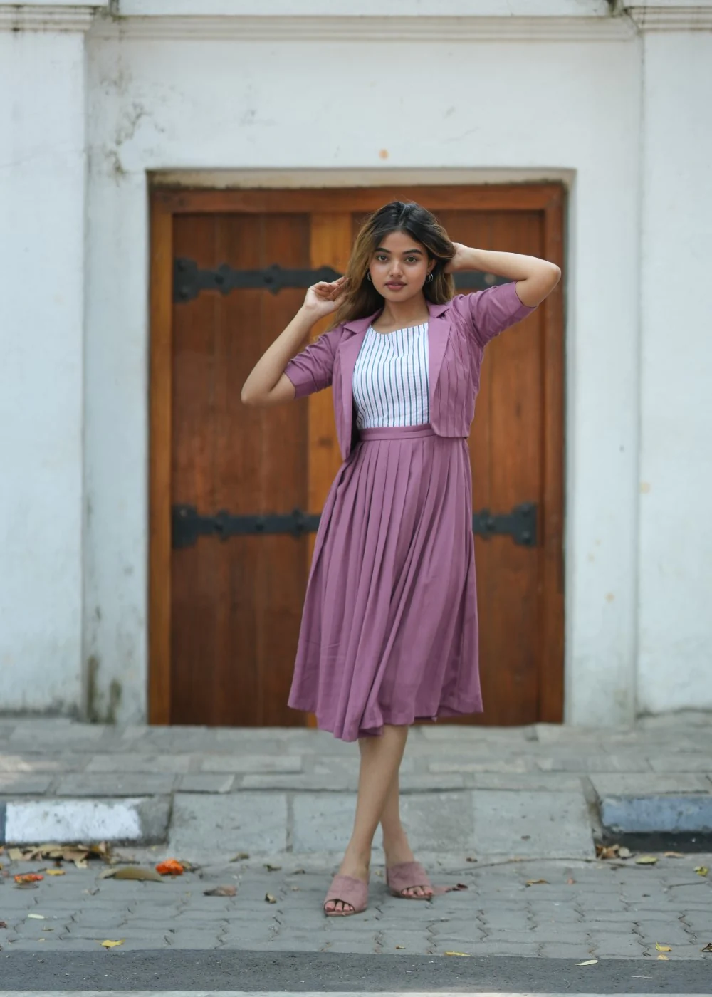 Women - Mauve Lapel Collar Shrug with Fold up Sleeves & Embroidery
