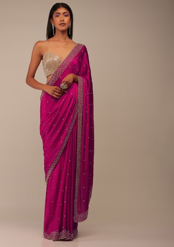 Pink Saree In Stones And Cut Dana Embroidery