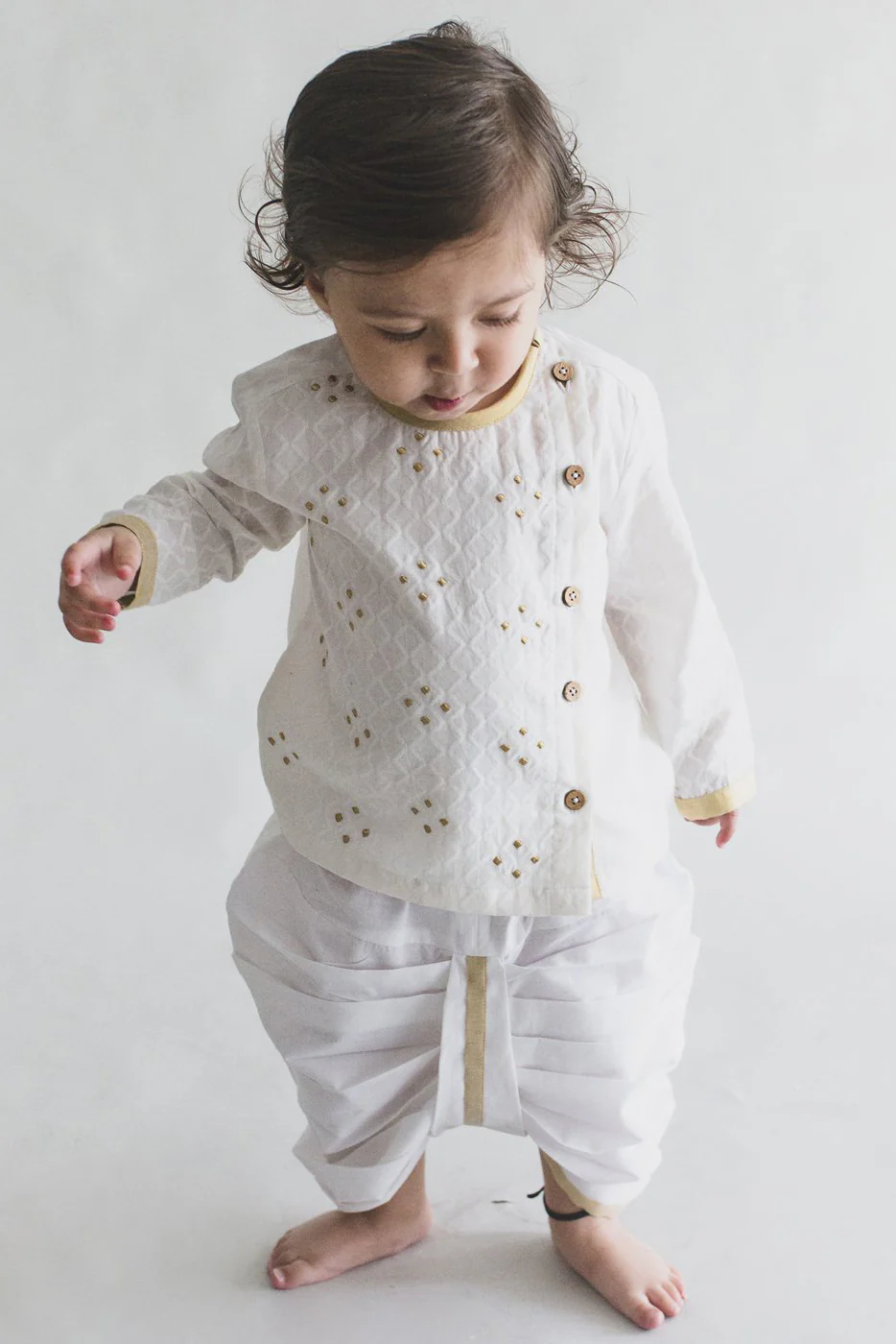 Baby Boy White Zari Kurta Dhoti Set