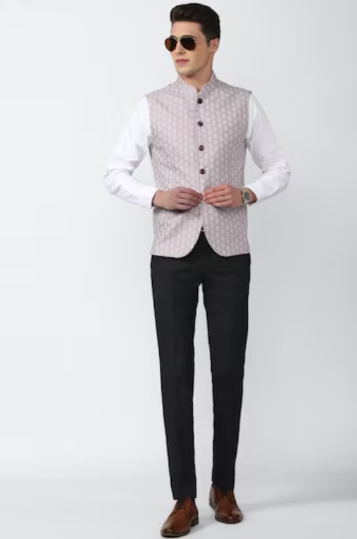 Men Purple Print Nehru Jacket