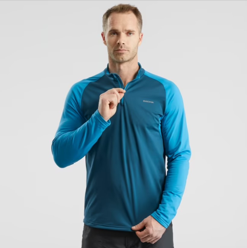 Men Hiking Long Sleeved Warm T-Shirt SH100 Blue