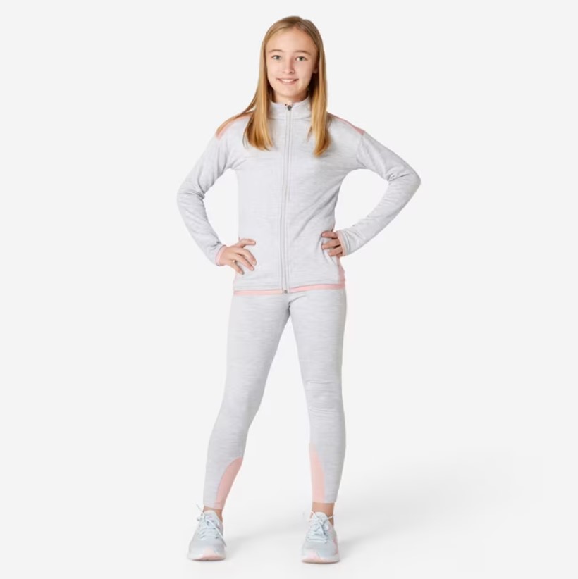 Kids' Breathable Synthetic Tracksuit S500 - Light Mottled Grey/Pink